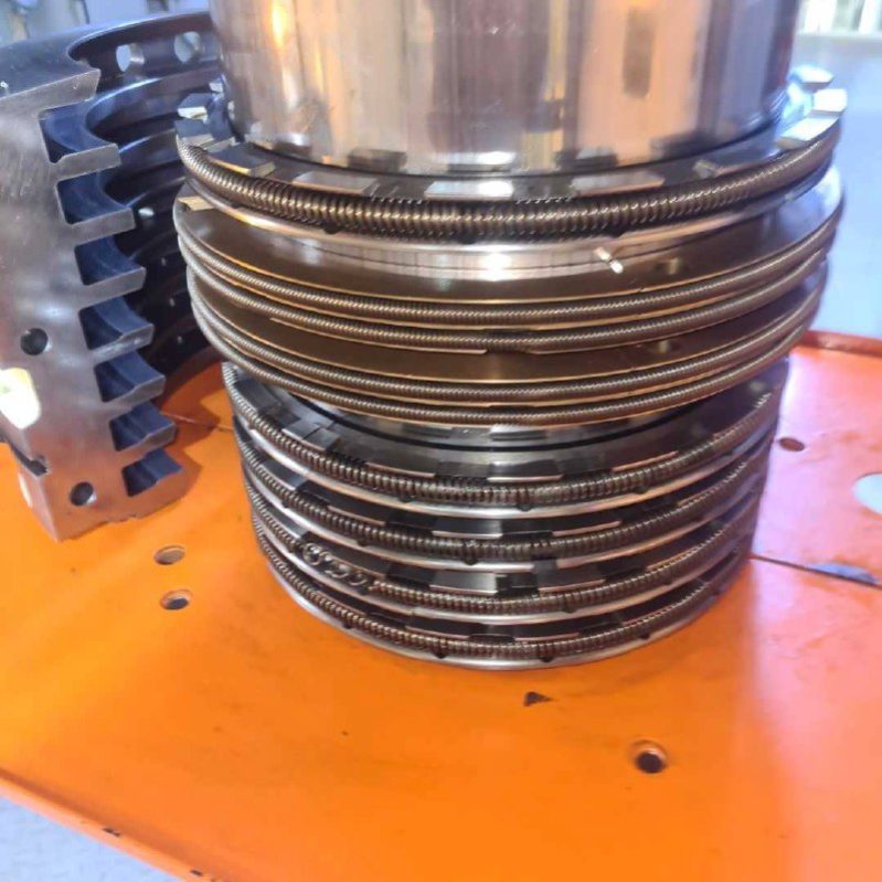 Основными элементами stuffing box являются уплотнительные кольца (scraper rings), которые вы можете видеть на фотографии. Всего установлено 8 колец, распределенных по канавкам:
