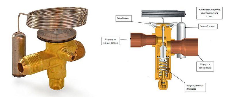Вчера мы уже говорили, что данный термобаллон устанавливается на выходе из испарителя и служит механическим сигналом для подачи фреона в испаритель. В зависимости от температуры на выходе ТРВ (терморегулирующий вентиль) будет открываться больше (если газ в баллоне перегревается сильнее) или меньше (если выход из испарителя холодный).
